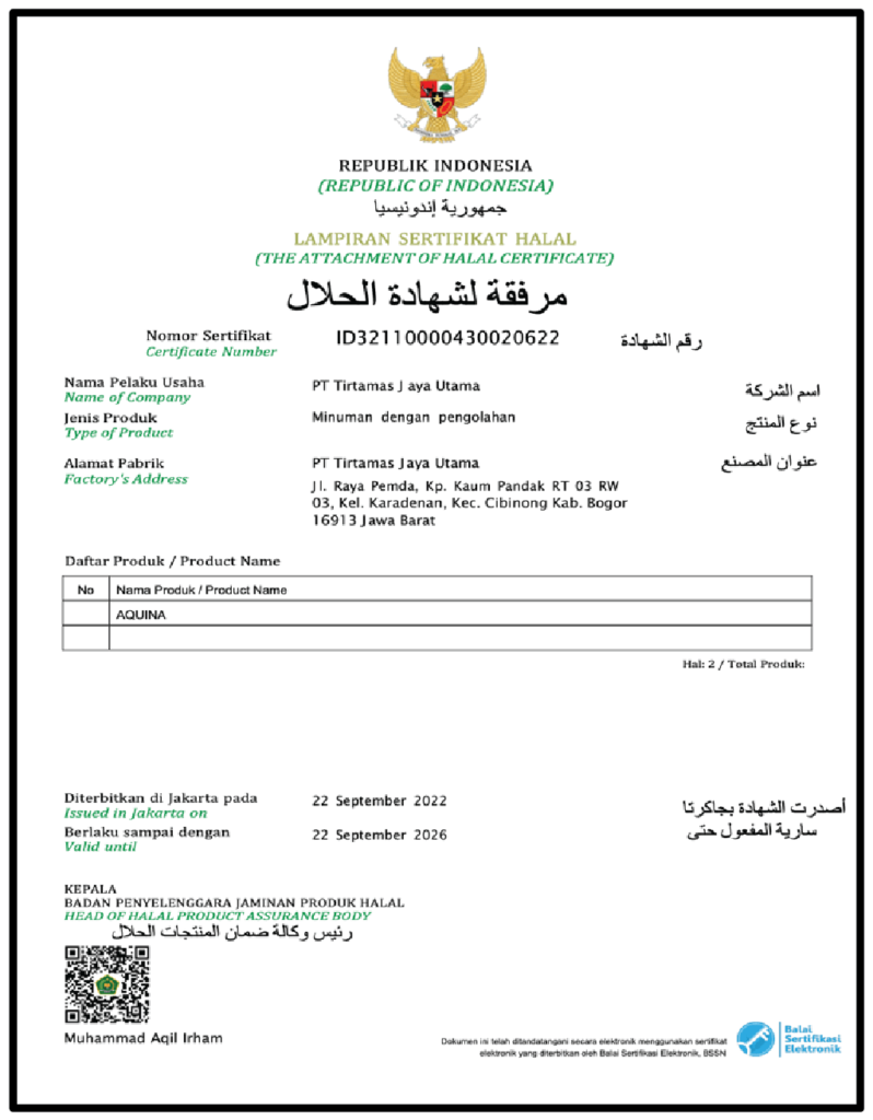 Sertifikasi AQUINA